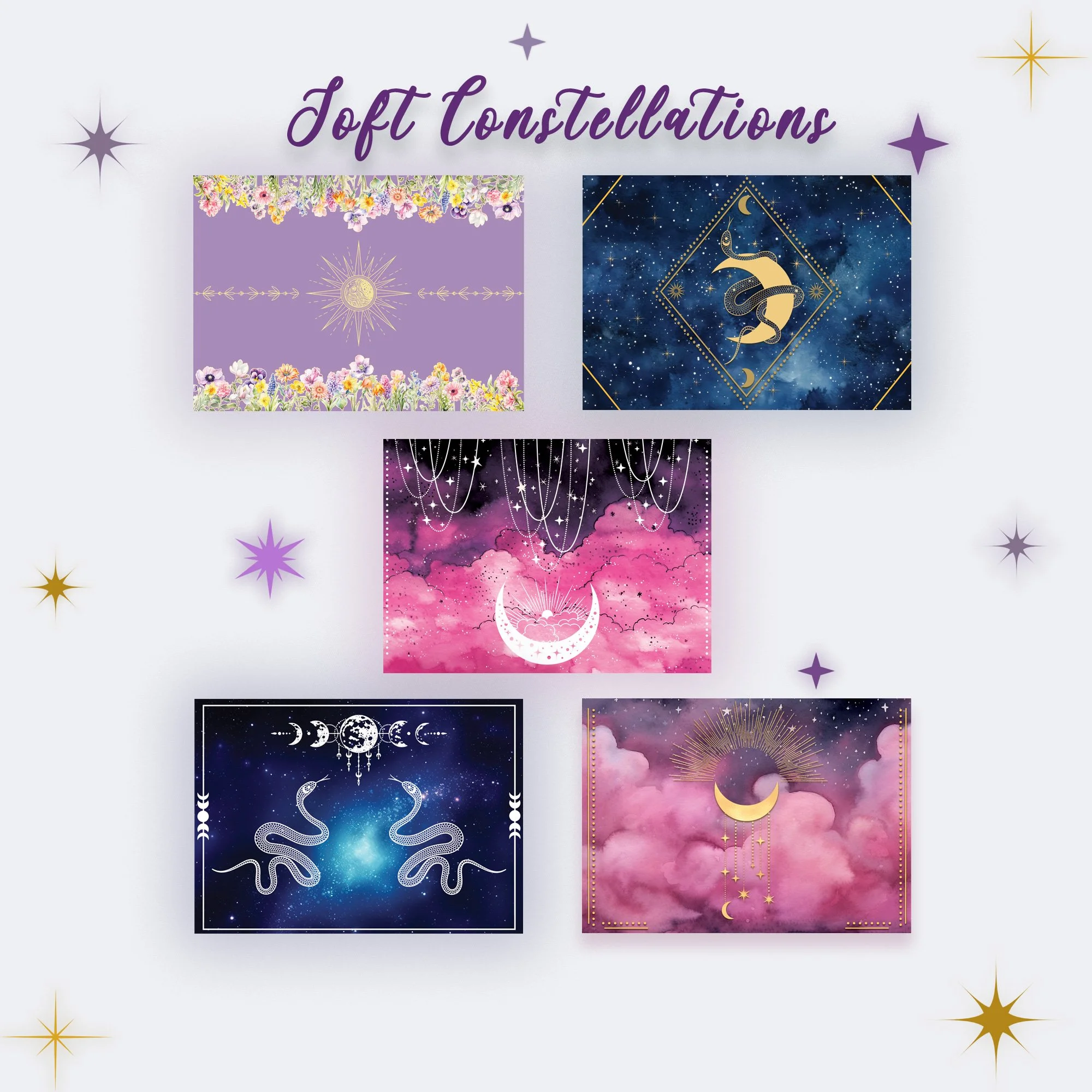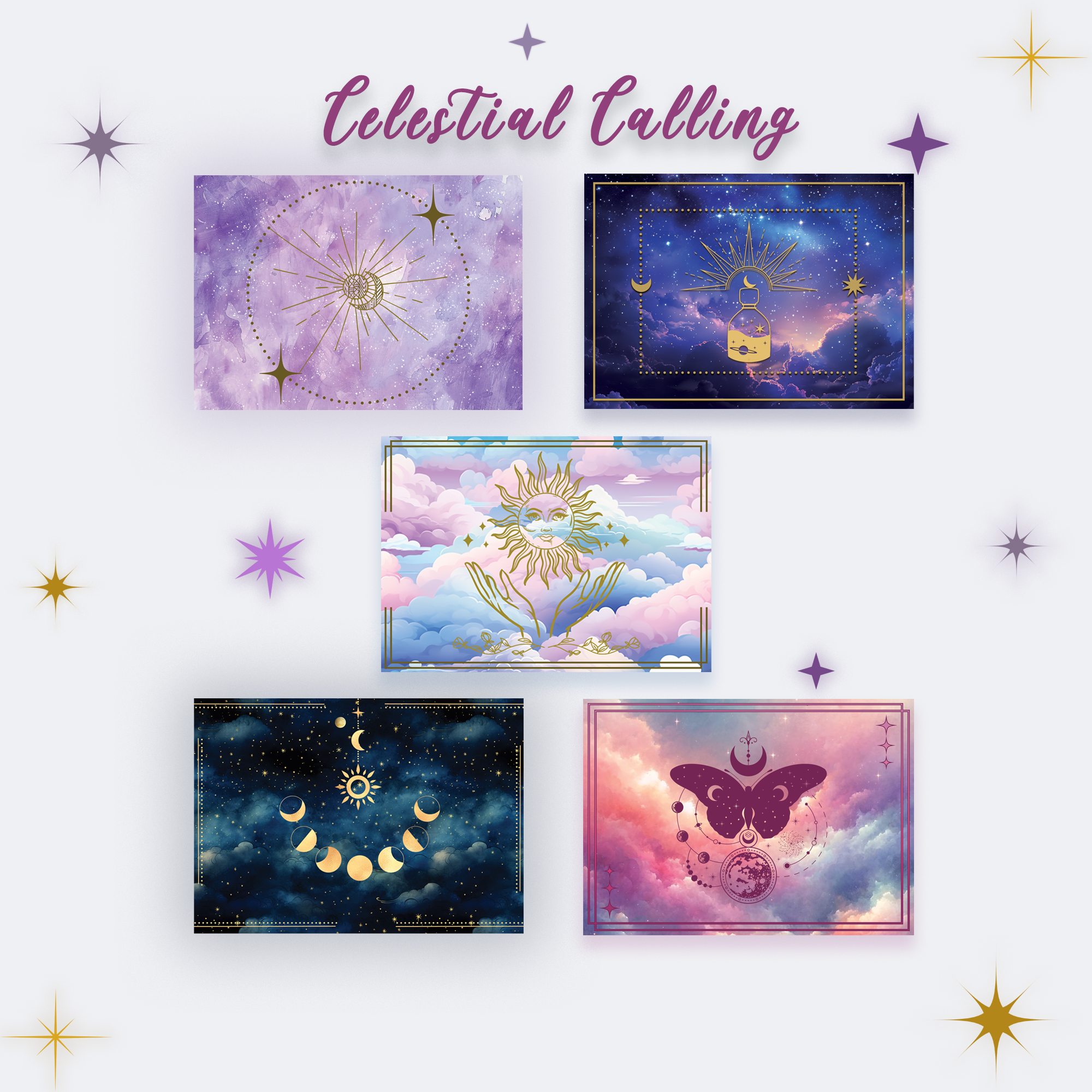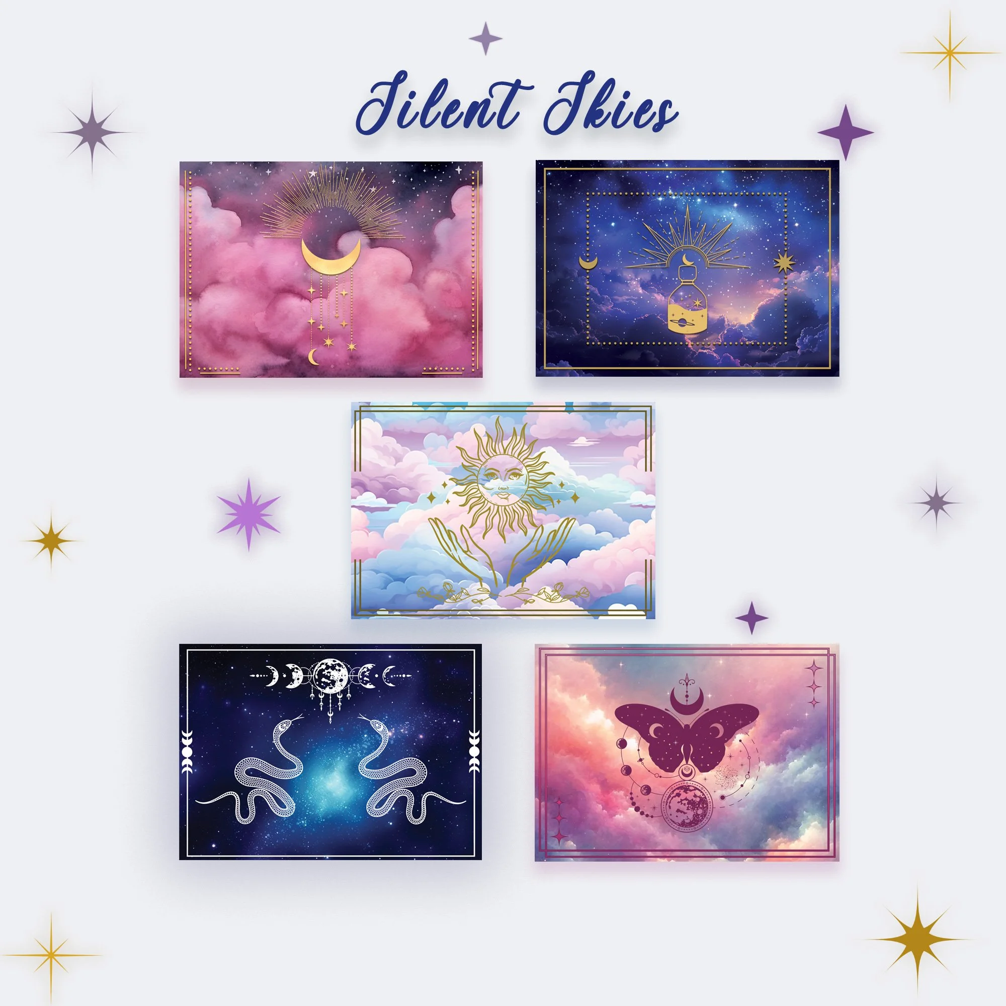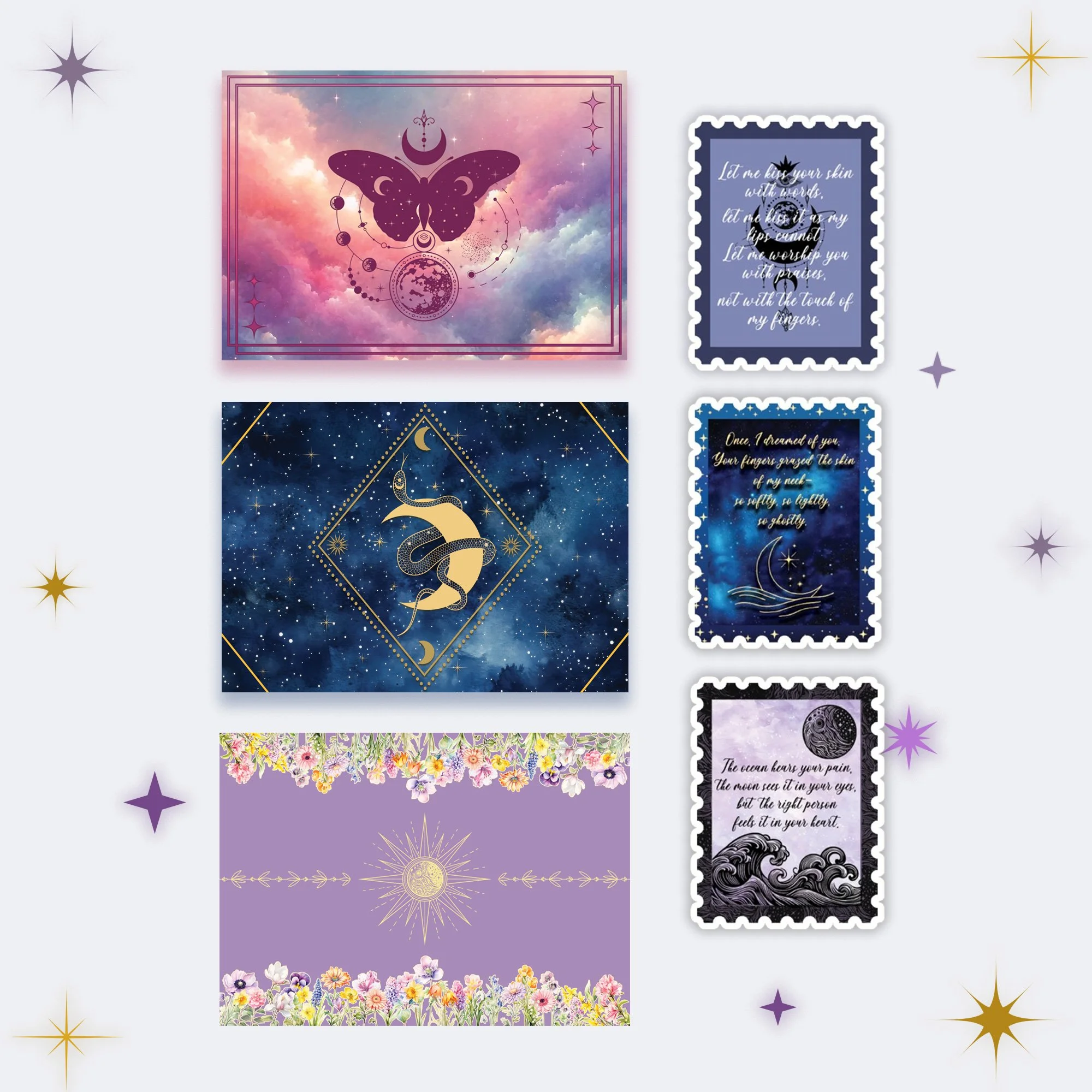 Choose from seven celestial bundles, each a carefully woven trio of postcards — soft as moonlight, bright as sunrise, or quiet as dusk. Whether you’re sending a secret, a wish, or a poem, these dream-bound cards carry more than words — they carry wonder.